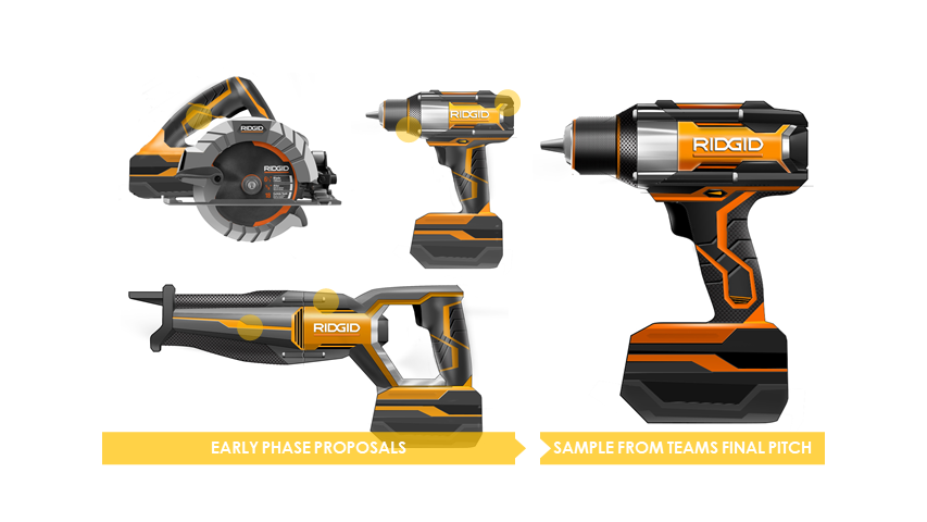 After working with the Ryobi team, I was able to move to the RIDGID professional power tool team and work extensively on a re-brand due to the introduction of brushless motor technology.